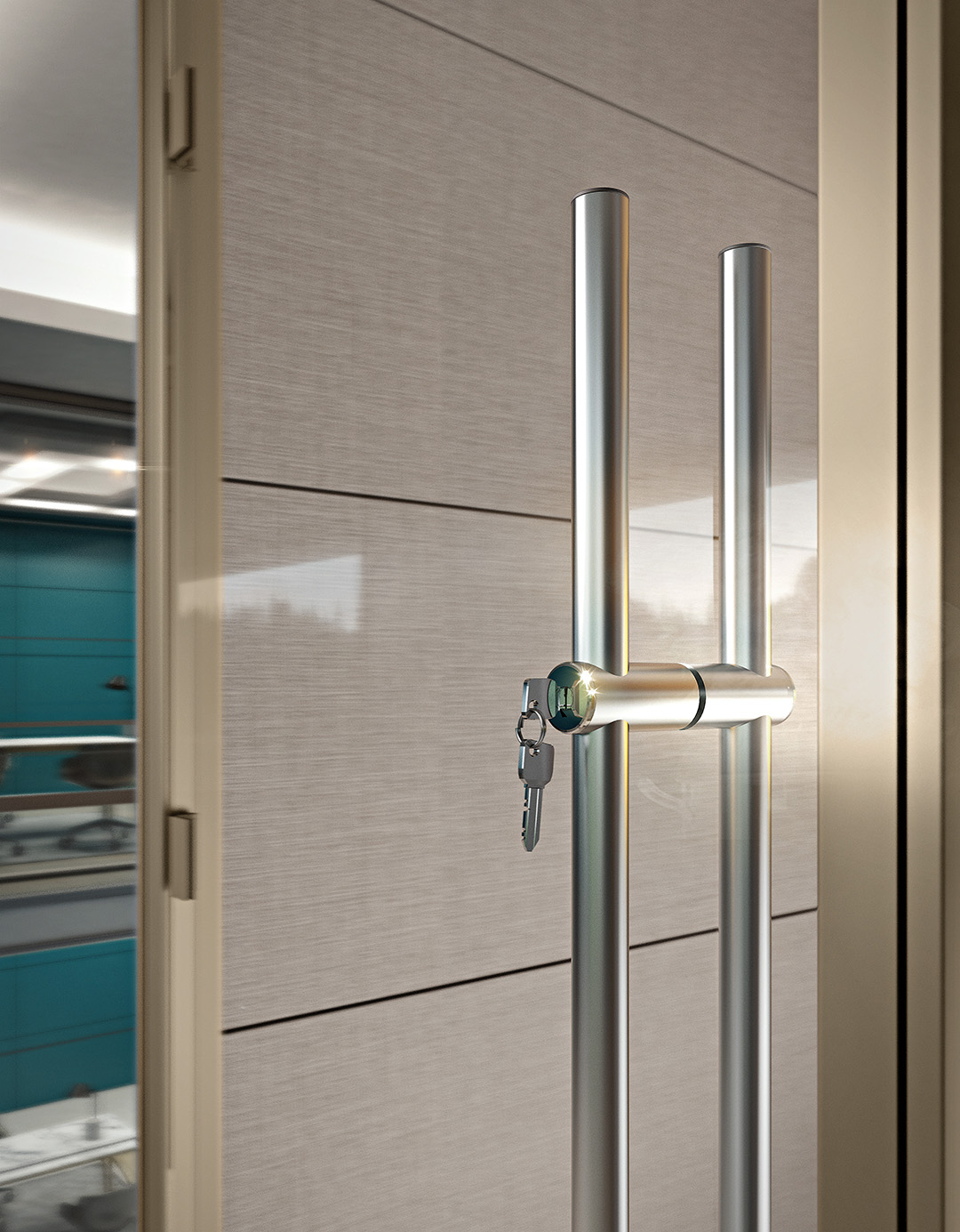 P100 structura with panel glossy lacquered finishing Ral 6004 and melamine panel finishing Tesuto Wall profiles finishing Golden Velvet Normal Doors 1 wing with handle closing on the floor.